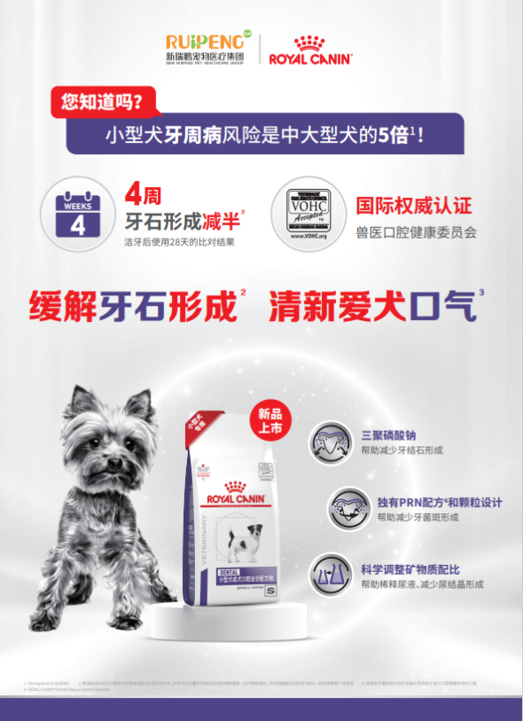• 小型成犬口腔全价配方粮:在亚宠展期间,皇家携手新瑞鹏举办“宠物口腔健康品类共建战略合作暨新品发布会”,并首发推出“小型成犬口腔全价配方粮”。