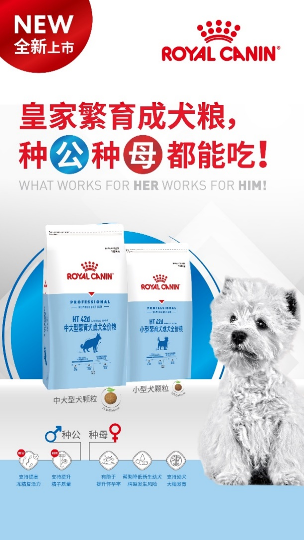 • 繁育成犬全价粮:皇家致力于在宠物生命的初期以精准营养提升动物福祉。本次亚宠展,皇家带来配方全新升级的繁育成犬全价粮产品。
